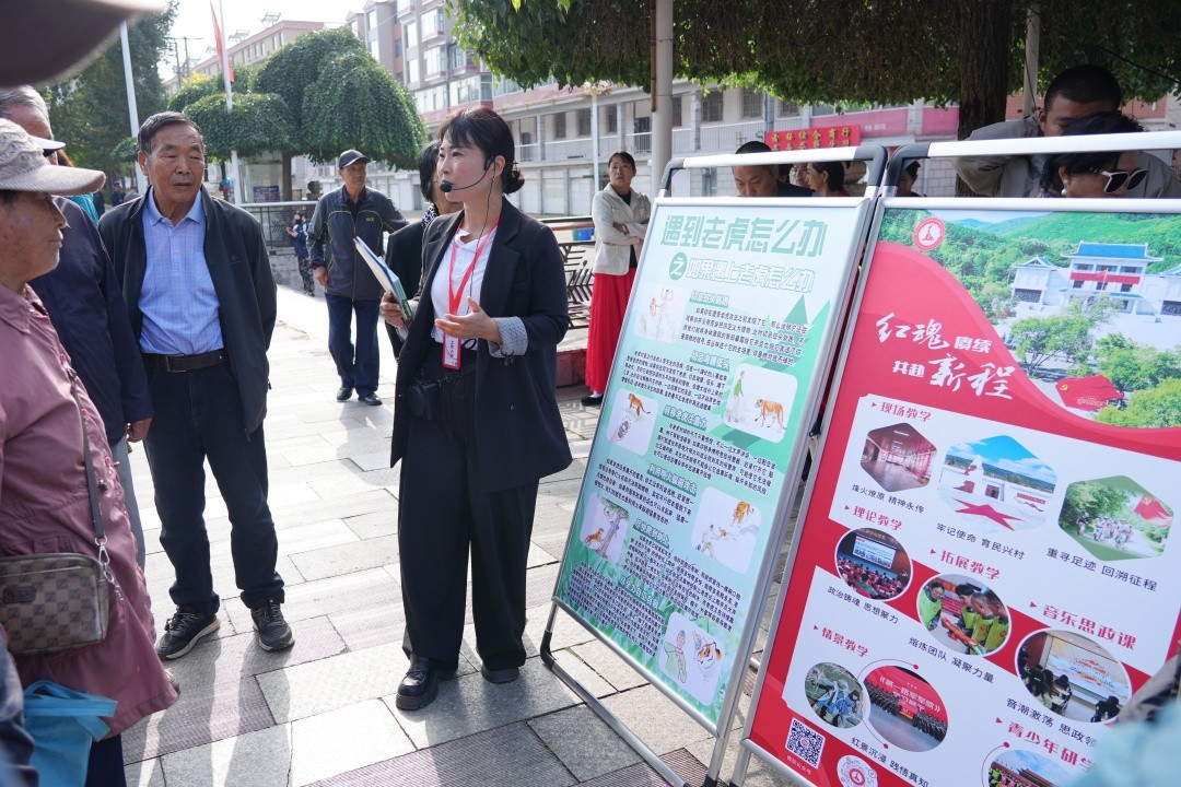 随后,宣讲工作人员走进汪清县第一实验小学北校区,向师生讲述东满抗战故事与虎豹保护知识,引导学生树立“红色传承、生态共护”理念。